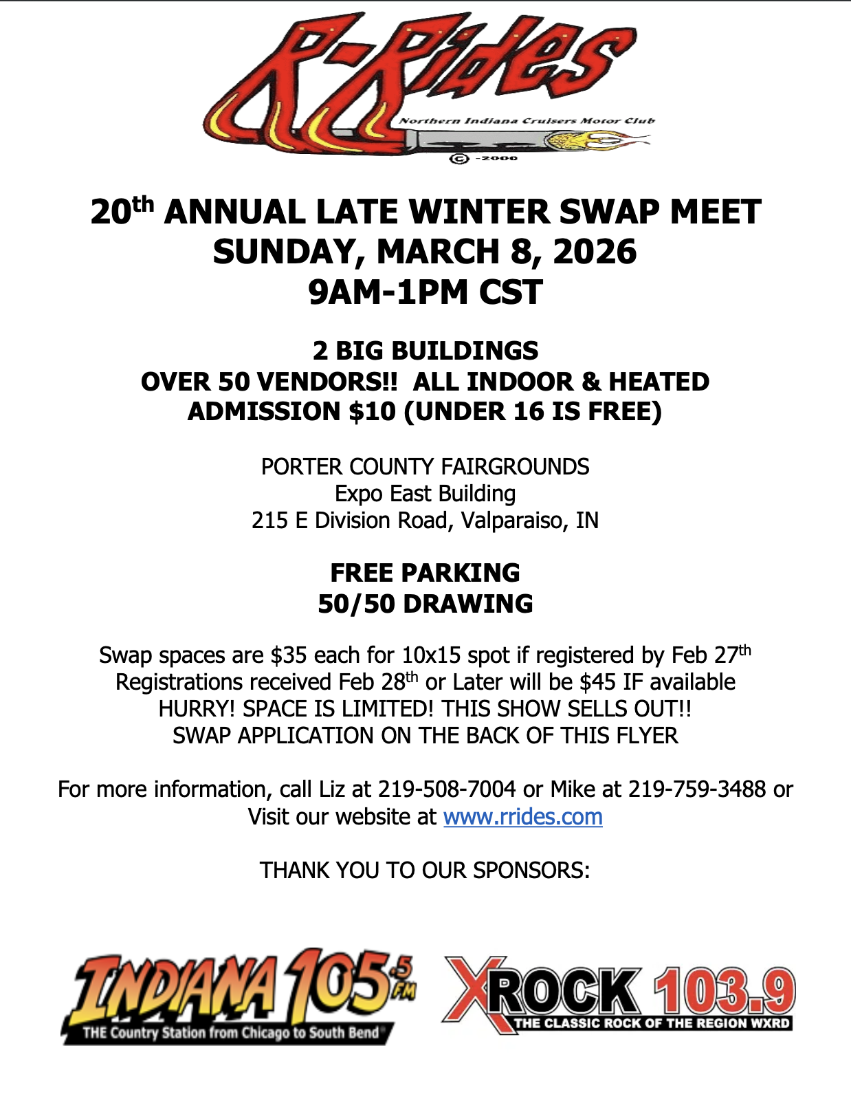 Our next event is our Swap Meet at Porter County Expo Center in Valparaiso March 8, 2026.